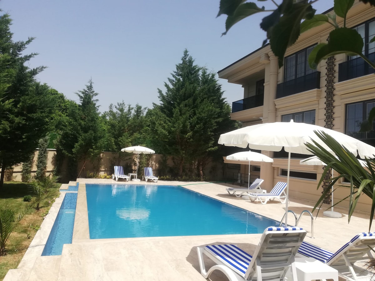 Plezier met het hele gezin in deze stijlvolle ruimte. Een droomvilla in Yalova/termal ,waar de natuur samenkomt om het perfecte toevluchtsoord te creëren! Een adembenemend uitzicht dat onderdeel wordt van je dagelijks leven. Deze villa heeft alles wat je nodig hebt voor een perfect verblijf! Een speciale tuin, die een rustig groen toevluchtsoord biedt voor jou en je gasten. Zwembad, sauna, jacuzzi? Ja, allemaal! Perfecte toegang tot de beroemde thermale baden van Yalova!