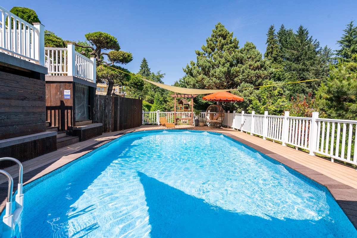 Hex Odyssey is een 3BD, 2BA zeszijdige BnB in Dundee Oregon, het epicentrum van Oregon Wine. Hier vind je een ruim, modern en sereen toevluchtsoord met een weids uitzicht op de Willamette Valley, veel wilde dieren, waaronder herten net buiten je raam, en een adembenemende sterrenhemel. Bekijk de zonsopgang vanaf het terras op het bovendek, of kijk naar de vuurplaats buiten op de buitenvuurplaats terwijl je omringd bent door natuur in deze mini-resort omgeving! Een perfecte plek om te reflecteren + rejevenate. Ons zwembad is geopend van mei tot september.