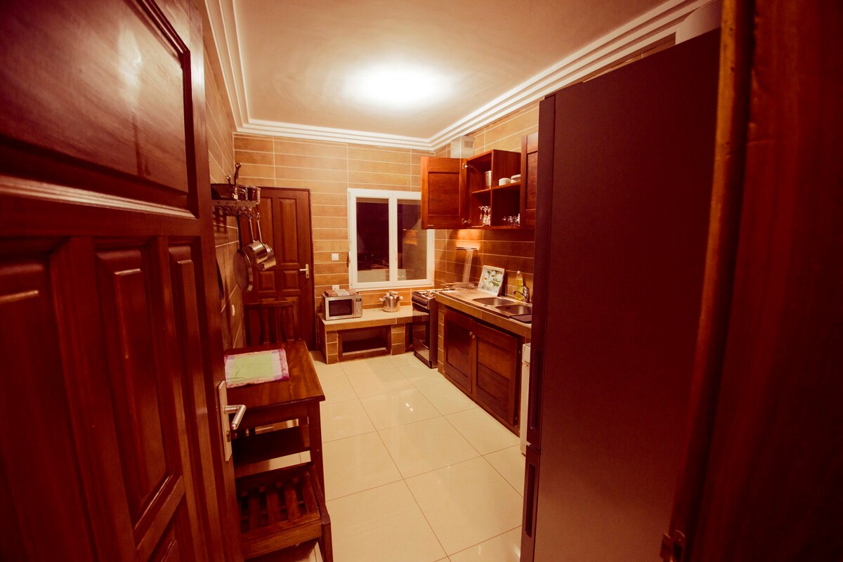 La Résidence THE VILLAGE est située à seulement 5 minutes à pied de la Poste Centrale, en plein cœur de Yaoundé. Idéale pour vos escapades en famille, elle dispose de 3 grandes chambres, de 3 lits doubles et de 4 douches. La cuisine entièrement équipée vous offre tout le nécessaire pour préparer des repas comme à la maison : four, micro-ondes, réfrigérateur, cafetière, etc. Un barbecue, une salle de sport et un espace vert sont également à votre disposition pour passer de bons moments.