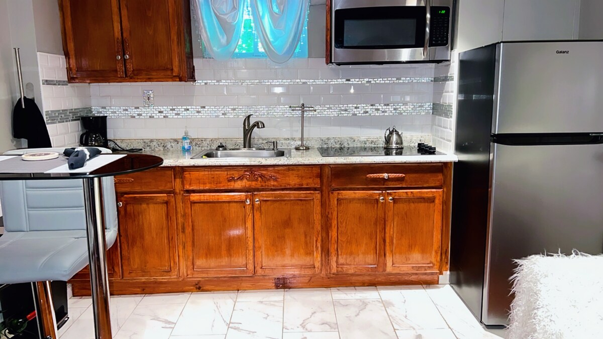 Een volledig ingericht appartement met 1 slaapkamer en 1 badkamer in een rustige buitenwijk, op 10 minuten van de luchthaven PHL - Gratis parkeren - Super schoon, gedesinfecteerd en ontsmet na het uitchecken van elke gast. - Snelle wifi met Netflix, Amazon en Hulu-Live. - Eetkeuken met elektrische kachel en gewone en K-cup koffie. - Wasmachine- en droger in de fitnessruimte/wasruimte (fitnessruimte momenteel gesloten). Ik kan een gast Gym-lidmaatschap toevoegen aan de lokale fitnessruimte (30 dagen of langer). - Beschikbaar voor langetermijnreserveringen.