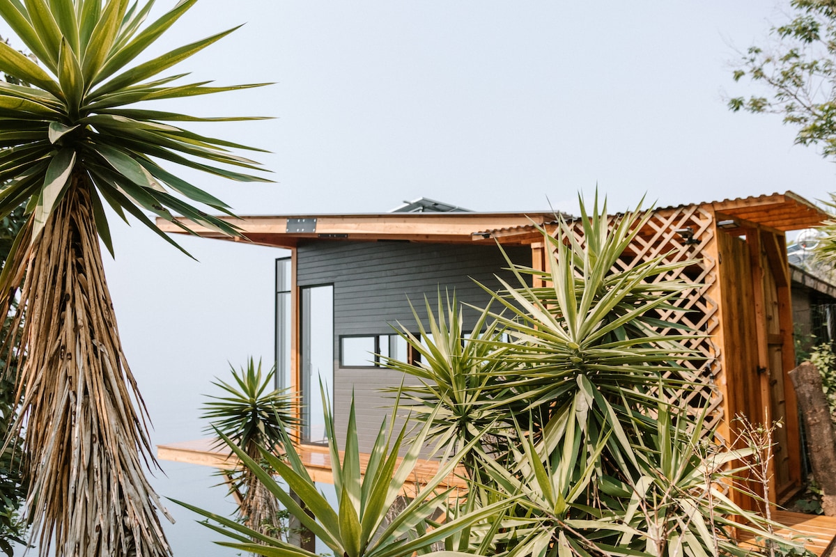 Zeer uniek en modern luxe huis in de hooglanden van Guatemala met de sensatie van drijven in de lucht (1700 m) - Eigenschappen onbelemmerde Starlink-verbinding met 24 uur van ongebroken elektriciteit (lithium/zonne-energie) - Alle ramen klappen volledig open om het adembenemende uitzicht op vijf vulkanen en het 'infinity lake' van het steeds veranderende 'schilderij' te begroeten - Gefilterd bronwater uit de kraan - Bubbelbad in de badkamer voor een gesloten of open deur-ervaring - 12 m2 vrijdragend hangmatterras - net voor sterrenhemel en ontspanning