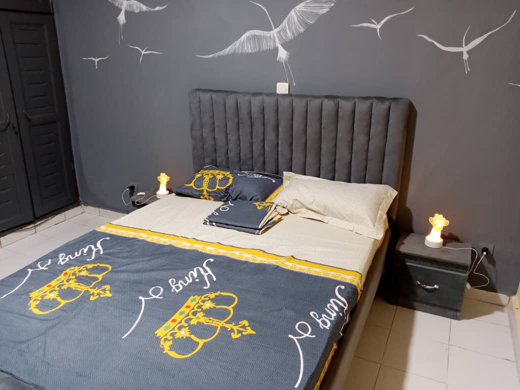 Profitez du meilleur spot d’Abidjan, à Cocody Angré 8è Tranche ! Ici tout a été pensé pour que vous vous sentiez vraiment bien : une grande terrasse aménagée privée pour vos apéros au coucher du soleil, un espace extérieur fermé avec son propre bar pour des soirées à l’ambiance tropicale et une déco intérieure unique qui mêle modernité et vibes africaines. Nous proposons aussi des services supplémentaires: • Véhicule/Massage/Pressing/Restauration/Décoration à thème/Ménage
