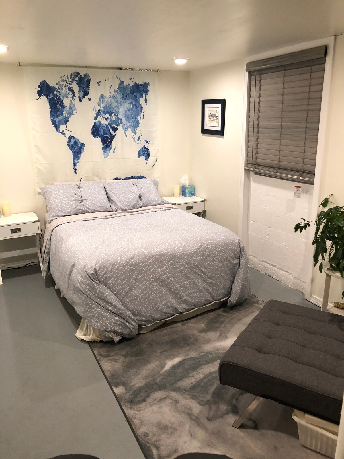 Welkom in onze moderne kelderretraite met 1 slaapkamer, genesteld in het charmante stadje Westbrook, op slechts drie minuten rijden van het Portland, Maine. Met zijn stijlvolle inrichting en luxe voorzieningen biedt deze Airbnb de perfecte mix van comfort en gemak voor je verblijf in de omgeving. De slaapkamer is voorzien van een queensize bed en een queensize slaapbank in de woonkamer en biedt comfortabel plaats aan extra gasten in de ruime woonkamer. Er geldt een toeslag van $ 200 voor huisdieren per huisdier.