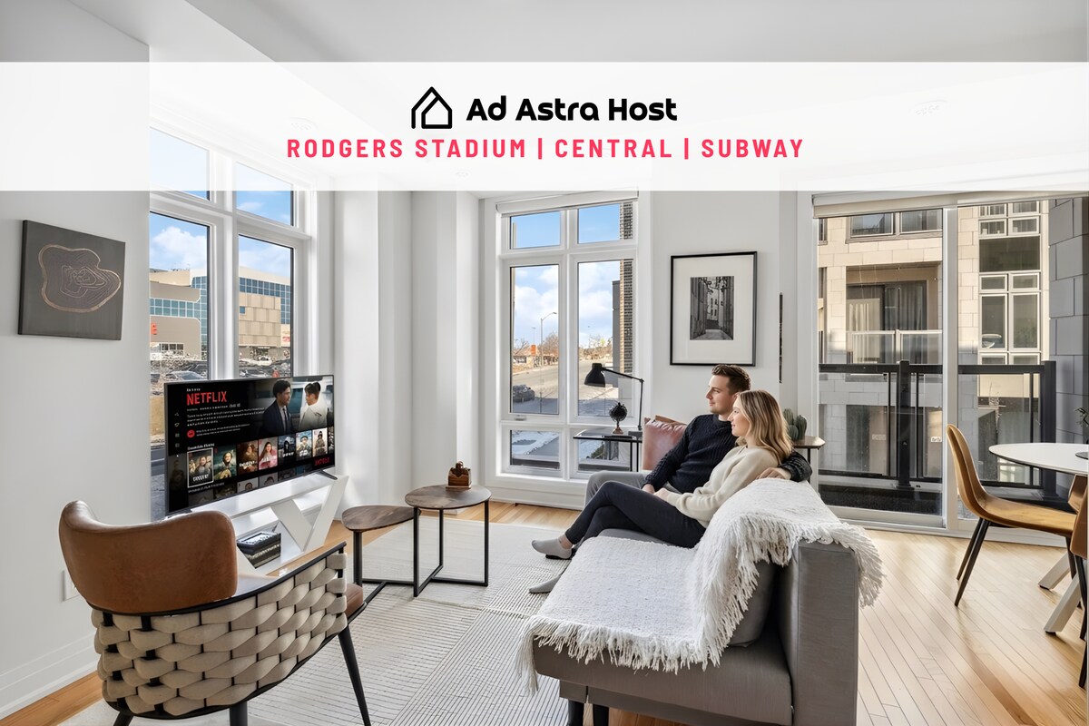 Grote en lichte 2BR+Den in Midtown met gratis parkeergelegenheid
