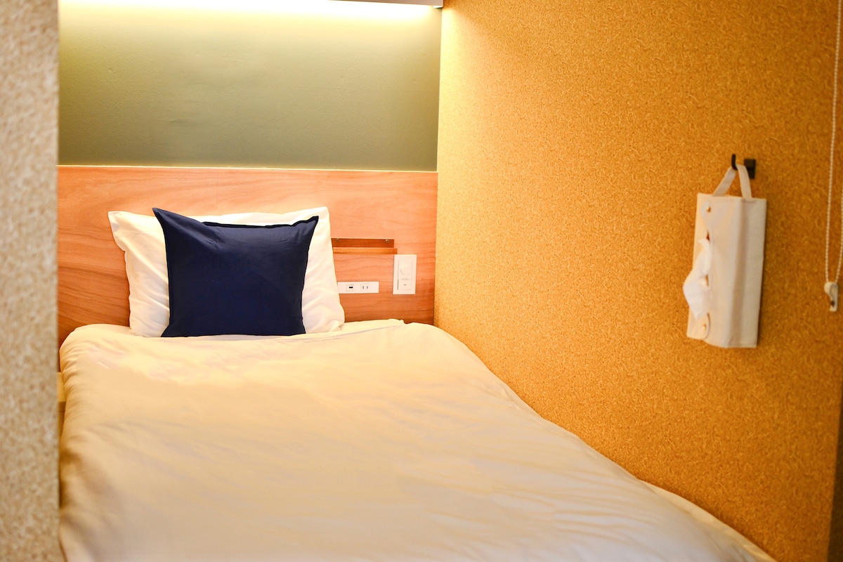 Ruim eenpersoonsbed! Hoewel het een slaapzaal is, is elk bed gescheiden door muren, waardoor je een eigen en comfortabele ruimte hebt. ☆Veel cafés en restaurants op loopafstand ☆ Sento & warmwaterbronnen 15 minuten met de auto ☆ Parkeerplaats 1 minuut lopen (¥ 300/dag) ☆ Ongeveer 15 minuten lopen naar het stadscentrum van Tokushima Deze schone en gezellige eenpersoons slaapzaal is perfect, zelfs voor gasten die voor het eerst in een slaapzaal verblijven. Door het hoge plafond kun je je verplaatsen terwijl je staat, wat onze gasten erg leuk vinden.