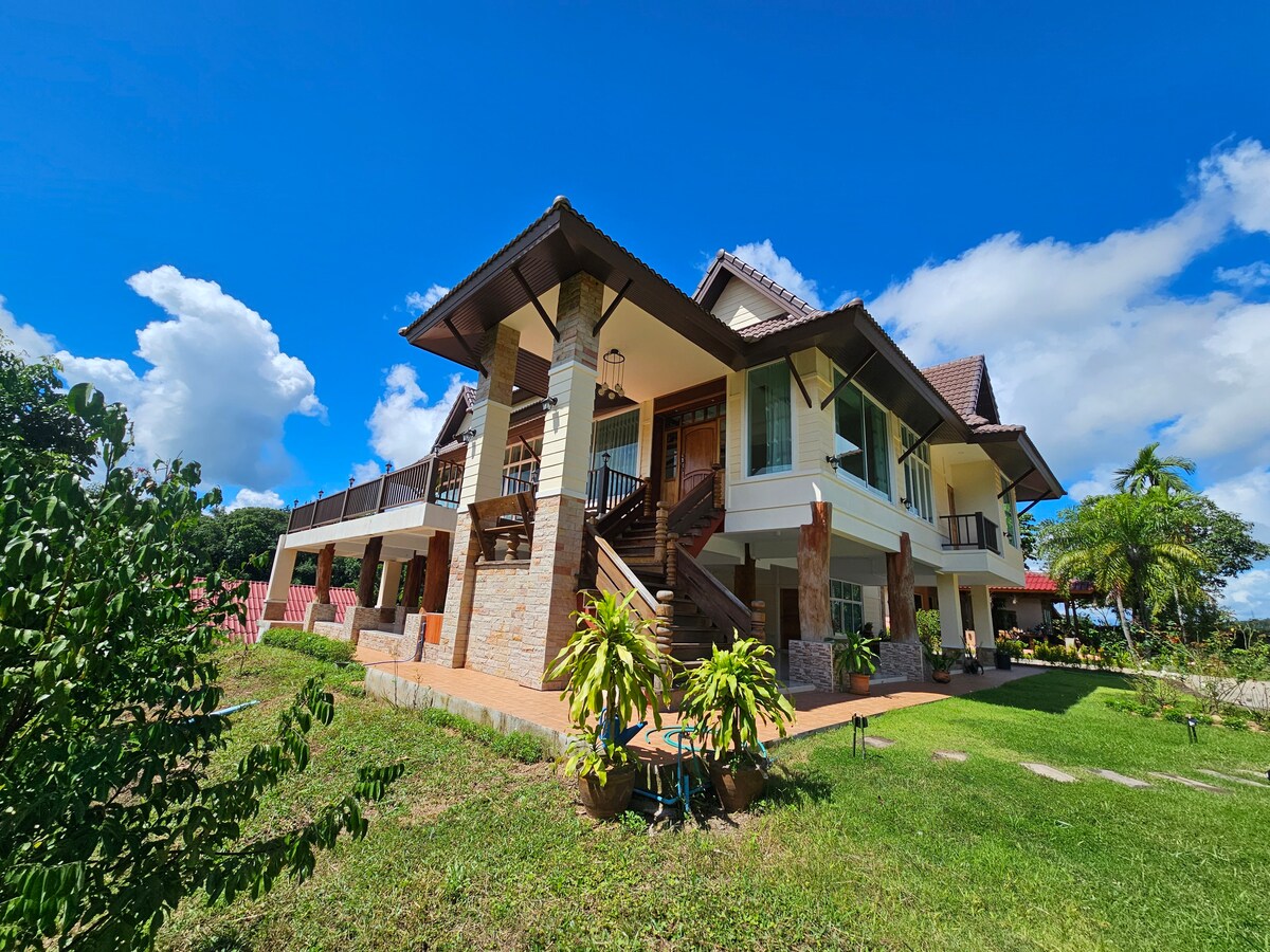 • Chiang Rai Daily Service • Goede sfeer, uitzicht op de natuur en de bergen • Privéwoning met 6 slaapkamers en 7 badkamers • 5 minuten naar Chiang Rai stad • Dicht bij toeristische attracties, gemakkelijk in en uit te stappen. • Van alles voorzien Mooi huisverhuur voor uw reis naar Chiangrai, Thailand. Vakantiewoningen. Volledig ingericht huis van twee verdiepingen - 480 vierkante meter 6 slaapkamers en 7 badkamers, mooie tuin en leefruimte buiten. Elke kamer airconditioners. Zeer dicht bij de stad 5 km of minder naar Central Plaza, 3 km naar Santiburi golfclub.