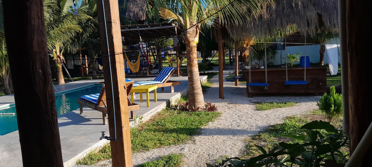 Wil je even ontsnappen aan de stad? Op slechts 1,5 uur van Mérida vind je een oase van comfort midden in de natuur. Een plek om jezelf te herontdekken met een nieuw ritme en te genieten van ruimtes omgeven door weelderige natuur. Houten huisje met tweepersoonsbed, complete badkamer, prachtige decoratie, airconditioning. Buitenzwembad en gedeelde keuken. Een plek ontworpen om onvergetelijke herinneringen te creëren op 15 minuten van de archeologische zone Uxmal en het chocolademuseum.