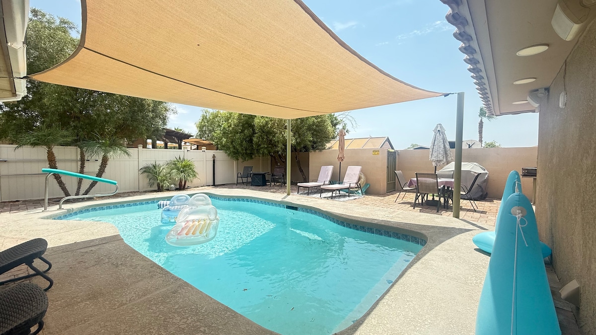 Het hele jaar door comfort en ontspanning in Yuma Ontsnap aan de zomerhitte of geniet van de warme winterzon in dit privé, rustige toevluchtsoord. Deze ruime woning biedt alles wat je nodig hebt om te ontspannen en te genieten van je tijd in Yuma. 2 kingsize bedden en 2,5 badkamers is er veel ruimte. Gunstig gelegen dicht bij I-8 winkels, restaurants en brandstof. Of je nu wilt ontspannen in de zon, af wilt koelen in het zwembad of wilt genieten van tijd met familie en vrienden, dit is de perfecte plek om alles uit je verblijf in Yuma te halen.