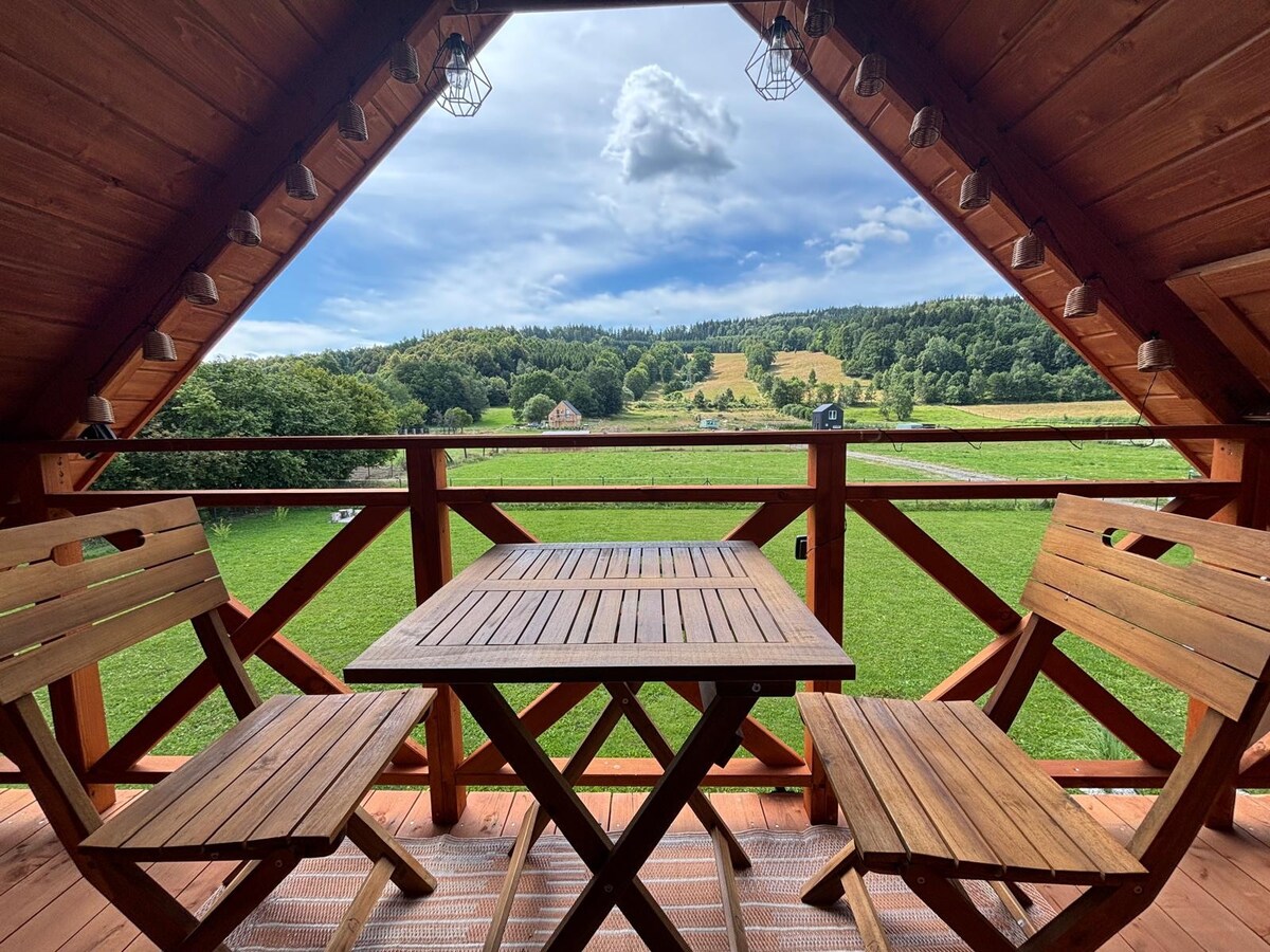 On a hill between Bardo and Kłodzko stands a charming family-built cabin with a beautiful view, crafted by hand with passion and attention to detail. Perfect for up to 6 guests – it offers 2 boho-style bedrooms, a cozy bathroom, a living room with kitchen, and a spacious terrace. Surrounded by meadows and forests, with only a few houses in the distance, close to the Nysa River and the village of Morzyszów. An ideal place to relax, enjoy sunsets, and recharge.