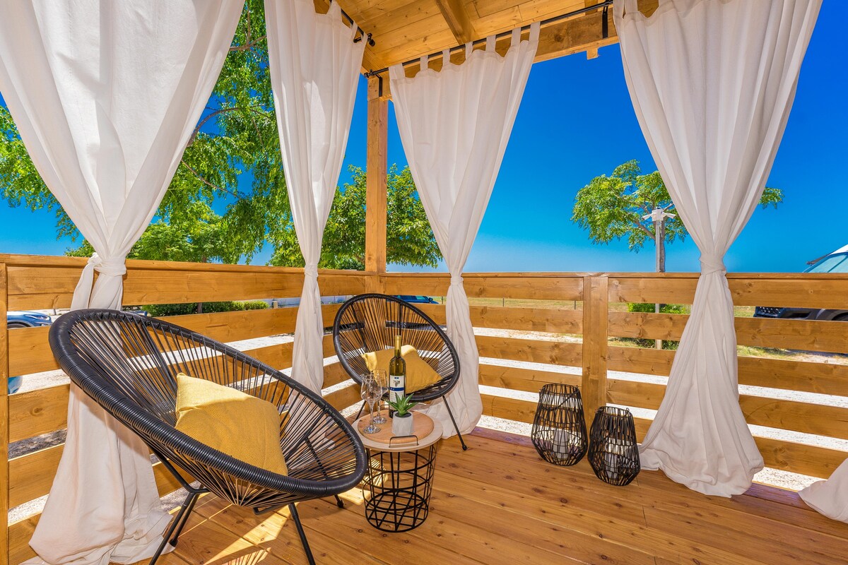 De gloednieuwe zomerbries stacaravan is gelegen in Camp Tabor in Privlaka, op slechts 30 meter van de zee. Het bestaat uit 2 slaapkamers, een keuken, een badkamer, een woonkamer en een prachtig terras met uitzicht op zee. De capaciteit is 5 personen. Uitgerust met alle nodige huishoudelijke apparaten, het heeft een wifi en een smart-tv. Vanwege de geografische ligging (15 minuten rijden van Zadar) is deze accommodatie perfect voor gezinsreizen en liefhebbers van natuur en zon. Wees onze lieve gasten en geniet van de zomerbries....