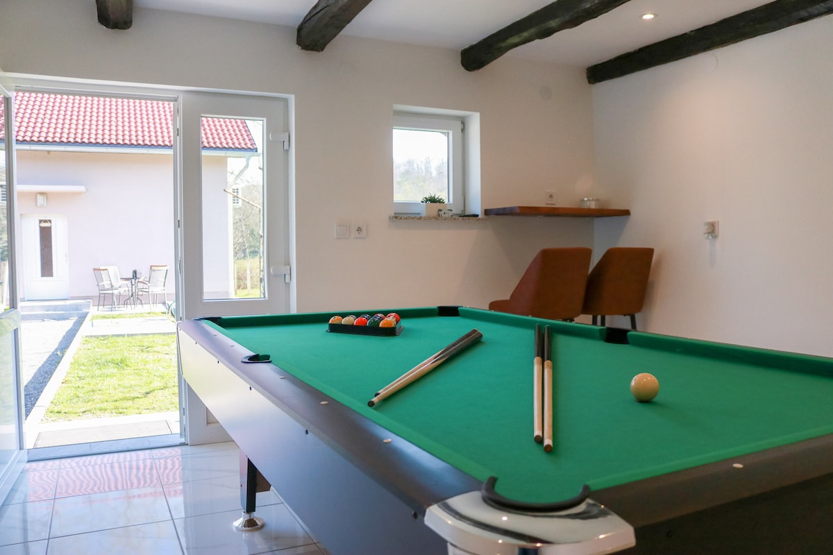 Creëer onvergetelijke momenten in deze unieke en luxe 4-sterrenaccommodatie, geschikt voor gezinnen, in het hart van het ongerepte landschap van het natuurpark Žumberak, aan de oevers van de zachte bergrivier Slapnica waar je geen airconditioning nodig hebt, in de directe omgeving van twee watervallen waarvan de schoonheid je zal verbazen. Houd je adem in. Geniet van een wandeling langs de bosweg langs de 9 km lange kloof van de rivier de Slapnica of vind gewoon je rust in de privacy van het pand.