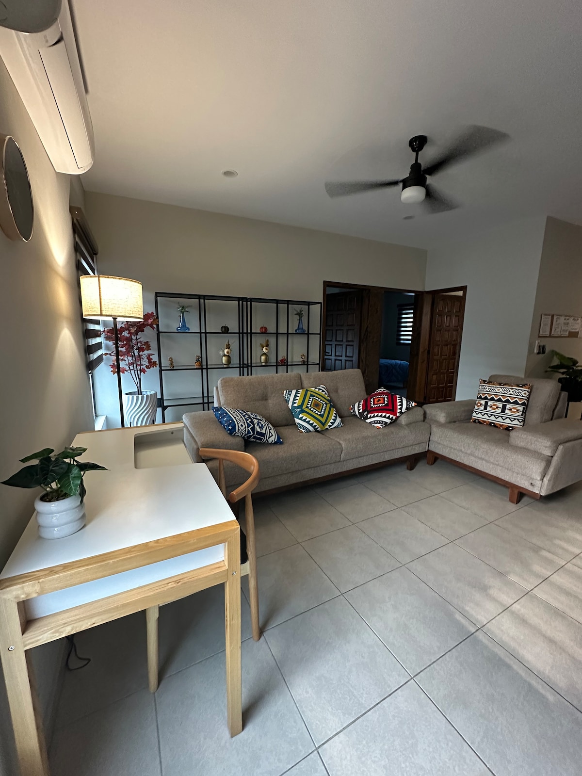 Comfortabel en modern op de begane grond met een uitstekende locatie in de buurt van Plaza del Sol en Expo Guadalajara. Slechts een paar blokken van López Mateos en Mariano Otero lanen. Zeer comfortabel en ingericht met veel stijl, meubels, accessoires en keukengerei die speciaal voor jou zijn geselecteerd om van je verblijf te genieten, het heeft een kitchenette, geen fornuis, maar als je er om vraagt, kunnen we je voorzien van een inductierooster. Het heeft airconditioning om een frisse en aangename sfeer te bevorderen