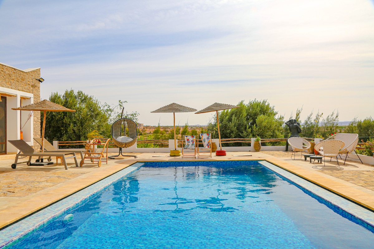 Welkom in onze gezellige Beldi-villa, op slechts enkele minuten van Essaouira Geniet van een rustige omgeving op het platteland, omgeven door groen, ideaal om je batterijen op te laden als een stel of gezin. De villa heeft 2 ruime slaapkamers, een lichte woonkamer, een uitgeruste keuken en een eigen zwembad. Elke ruimte is ontworpen om wellness en privacy te bieden. Ik zal blij zijn om je persoonlijk te verwelkomen en je te helpen ontdekken. Jouw comfort en tevredenheid zijn mijn prioriteit
