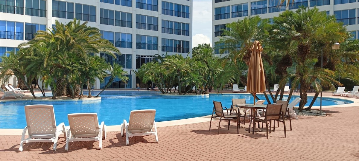 Ontdek je perfecte uitje met uitzicht op de oceaan. Welkom in onze gezellige studiosuite, ideaal voor koppels, kleine gezinnen of vrienden die op zoek zijn naar comfort en rust aan de kust. Gelegen op de eerste verdieping van een moderne appartemententoren. Vanaf de suite heb je een prachtig uitzicht op de oceaan en het overloopzwembad. Laat je omhullen door de zeebries. Maak van je verblijf een onvergetelijke ervaring. We wachten op je!
