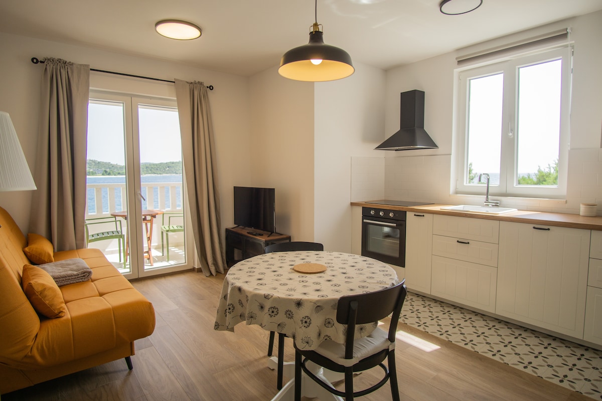 Twee slaapkamer appartement met ruim terras, gelegen in een klein en rustig Dalmatisch dorp Zecevo. Appartement heeft een keuken met eettafel, woonkamer met smart-tv, we-fee, badkamer met een wasmachine en terras met eettafel en bank. Beide slaapkamers zijn uitgerust met 2 persoonsbedden. Prachtige stranden met kristalheldere zee liggen op minder dan tien minuten lopen of twee minuten met de auto. Het is perfect als je op zoek bent naar een uitje uit een drukke stad of gewoon wilt ontspannen, zwemmen en zonnebaden.