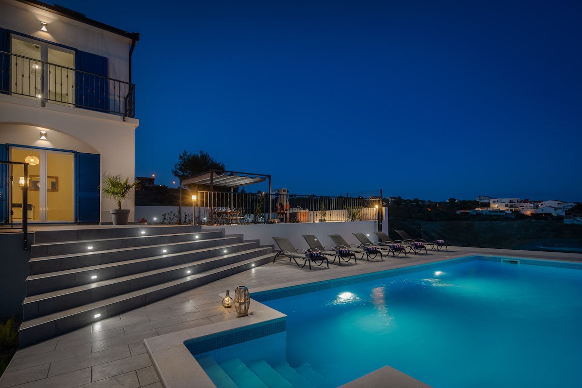 Villa Smokvica is een luxe Dalmatische stenen villa met een eigen verwarmd zwembad (40 m²), een jacuzzi in de buitenlucht, een sauna, een fitnessruimte en een panoramisch uitzicht op zee. Het ligt exclusief in zijn eigen wijngaard op een rustige heuvel boven Rogoznica en biedt het hele jaar door volledige privacy, rust en comfort. Een verfijnd toevluchtsoord voor gasten die op zoek zijn naar ontspanning, wellness en moeiteloze toegang tot stranden, restaurants en Dalmatische hoogtepunten.