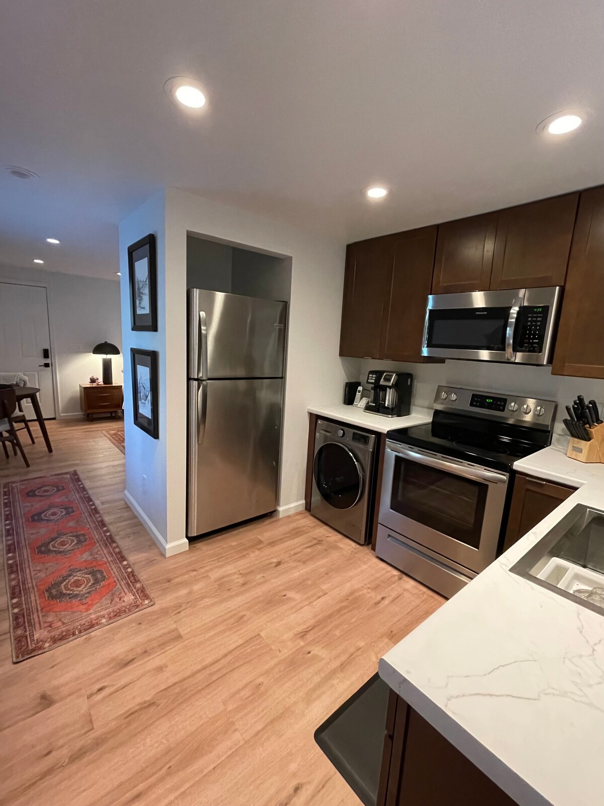 Staren uit de ramen van dit nieuwe huis geeft een gevoel van zitten in een boom, met uitzicht op het omliggende groen. Geniet van een avond op de grote overdekte veranda na een dag wandelen in het oude sequoiabos. 2 slaapkamers met beddengoed van hotelkwaliteit zorgen voor een goede nachtrust, een volledig moderne keuken zal ontbijtcreaties inspireren. Snelle en eenvoudige instructies voor het uitchecken IG@pepperwood_place