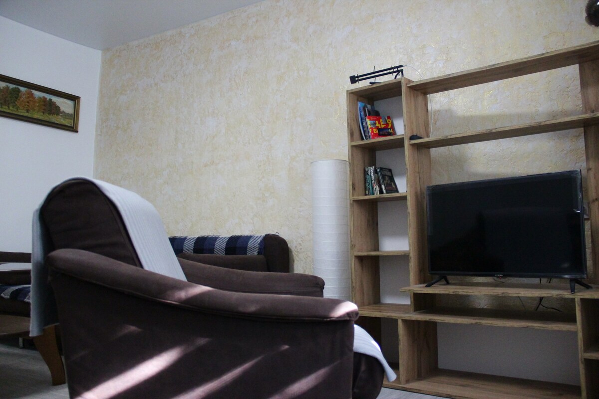 Slim appartement met renovatie, waar je comfortabel kunt verblijven. Er is een uitklapbare bank en twee fauteuils. In totaal kunnen er 3 tot 4 personen tegelijkertijd verblijven. Het meest comfortabel is voor twee. In de buurt winkelcentrum, instituten, technici en ziekenhuizen. Op loopafstand - entertainment centers, Astronauts Avenue, Pirogov 's tuin. Wij leveren relevante documenten.