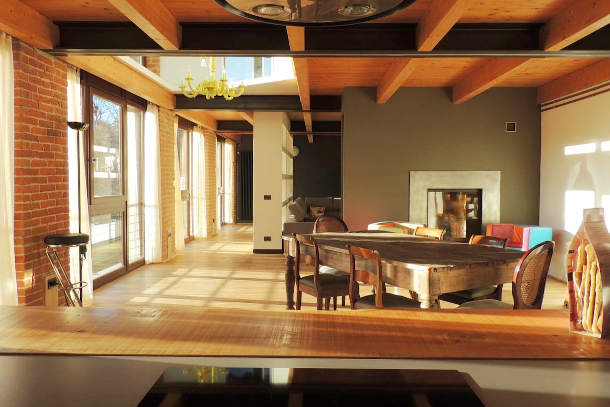 Licht en design penthouse in het historische centrum van Alessandria, op een steenworp afstand van de Duomo. Grote woonkamer met open keuken, slaapkamer met kingsize bed van traagschuim, inloopkast en ontspannen sfeer tussen parket, kunst en verfijnde details. Handig parkeren op het plein onder het huis.