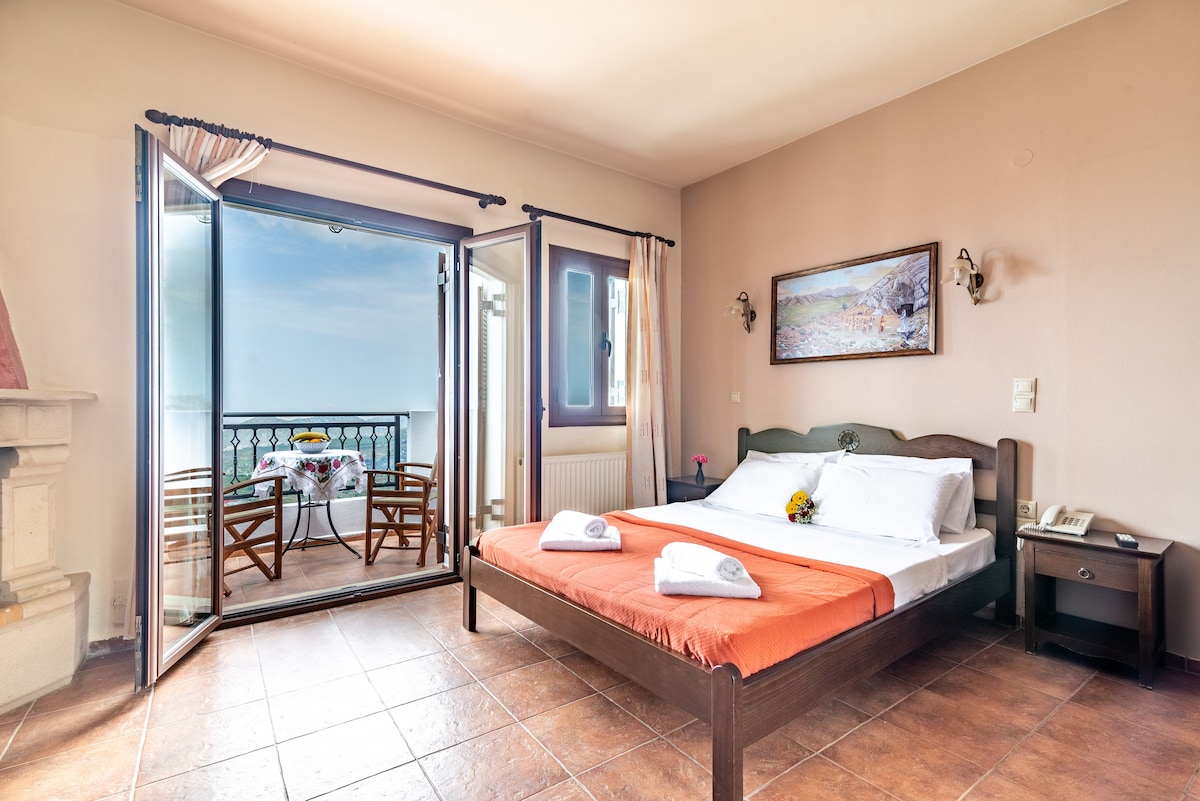Αυτό το μόλις ανακαινισμένο πολυτελές στούντιο με εκπληκτική πανοραμική θέα στη θάλασσα και το ηλιοβασίλεμα, βρίσκεται στην κορφή ενός μικρού λόφου σε μία ήσυχη γειτονιά, με δωρεάν πάρκινγκ στο δρόμο.Η παλιά πόλη απέχει 12 λεπτά με τα πόδια. Διαθέτει ένα ενιαίο χώρο (υπνοδωμάτιο - κουζίνα) και ένα μπάνιο 27τμ περίπου πλήρως εξοπλισμένα. Επιτρέπεται για σας η χρήση όλων των χώρων του διπλανού πολυτελούς ξενοδοχείου MACARIS SUITES & SPA παραγγέλνοντας κάποιο φαγητό η ποτό.