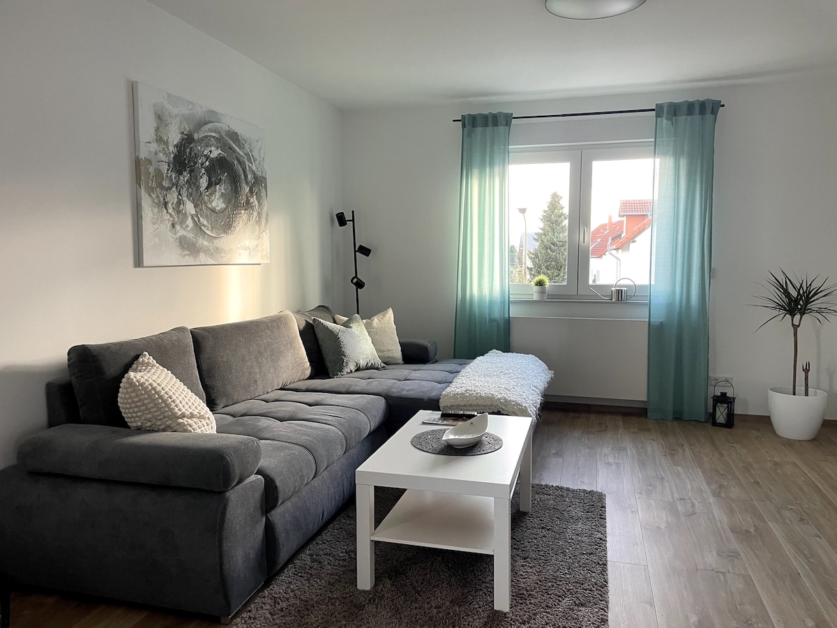 Perfect uitgangspunt om te wandelen of om te ontspannen. We wonen bijna in het bos, pure natuur als het laatste huis in de straat, omsloten door bomen om te genieten van de rust. Desondanks ligt het appartement vrij dicht bij het centrum en de oude stad is te bereiken in ongeveer 25 minuten lopen. Het appartement heeft een eigen ingang, alles bevindt zich op de begane grond, de keuken is volledig uitgerust. Net buiten de voordeur beginnen veel wandelpaden naar de Kirchberghäuschen, Fürstenlager. Parkeren kan in de tuin.